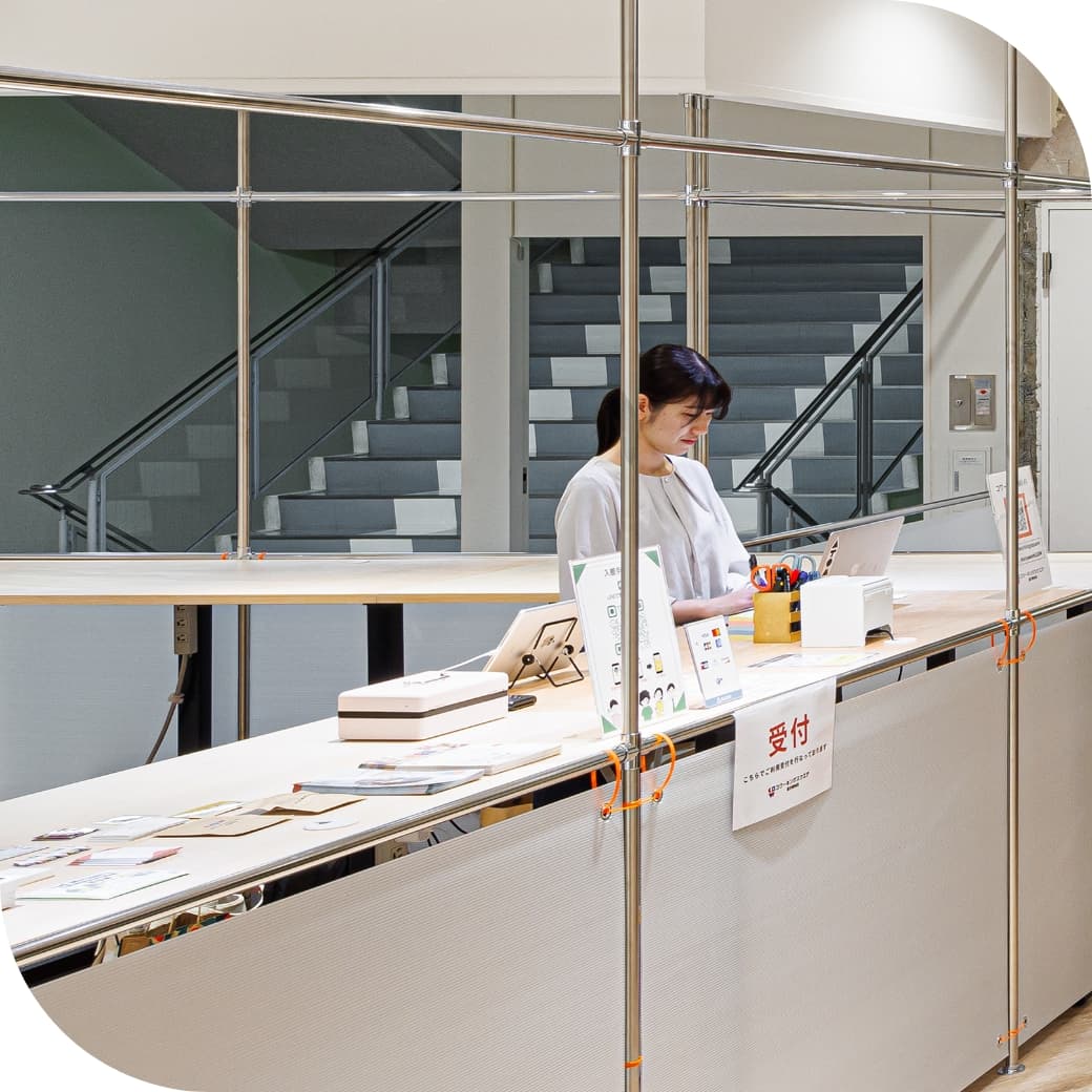 施設の受付でもあり、人と人を繋ぐコンシェルジュがいるスペースでもあります。困ったことや気になること、使い方についてもお気軽にご相談ください。