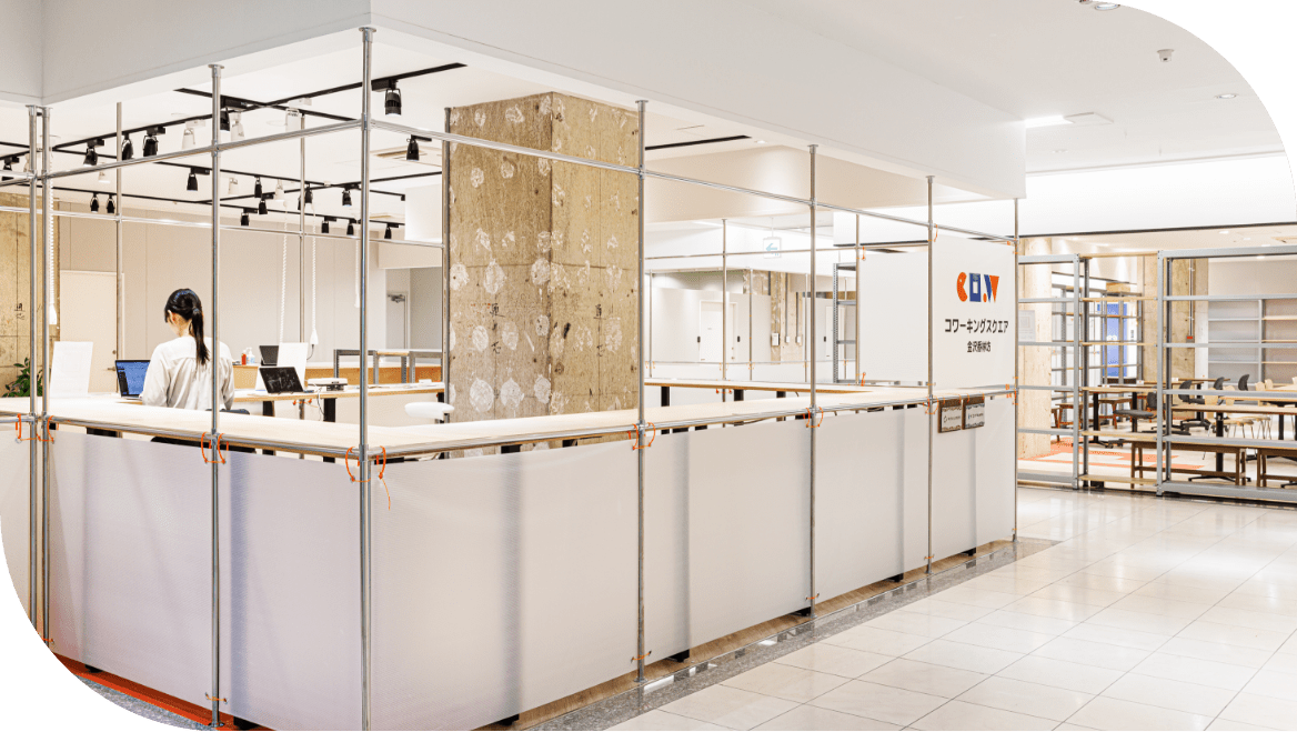金沢版サテライトオフィス等開設支援モデル事業採択事業 金沢市のサテライトオフィス等開設支援モデル事業の補助金を活用して、施設を整備しました。